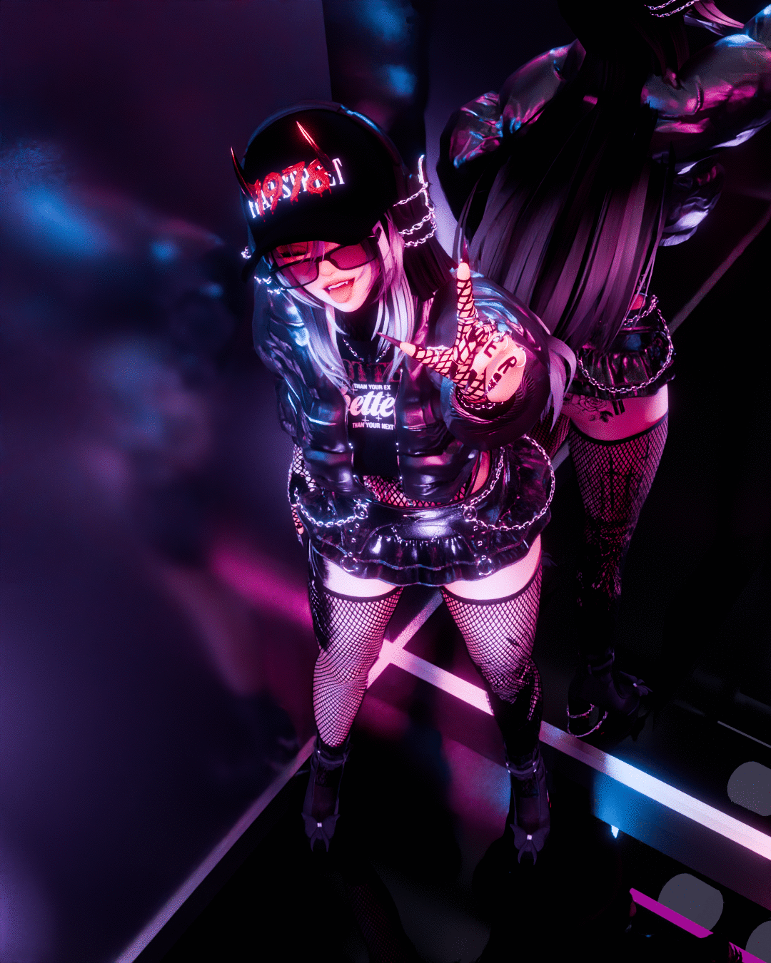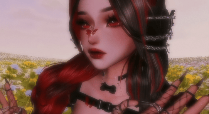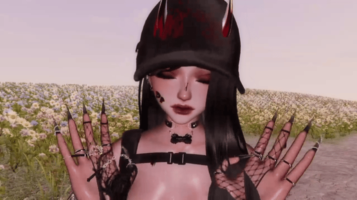 ASC › 2 headwear, 2 glasses, multiple bandages and chains, 2 necklace, 2 choker, garter, knife, blood pack, phone, butterflies on body(animated)